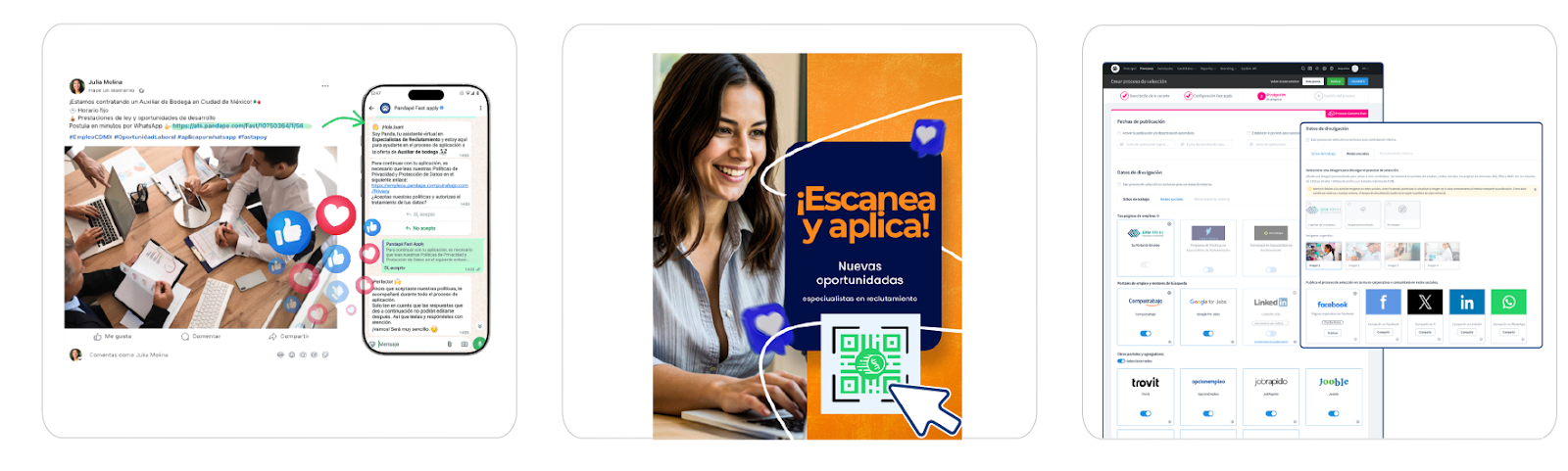 - Enlace directo: Compártelo en redes sociales, correos o grupos de WhatsApp para llevar al candidato directo a la postulación.