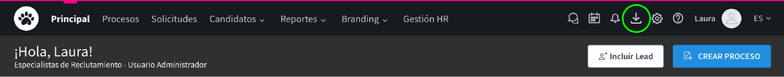 - En la barra superior derecha de Pandapé ATS, busca el ícono de la flecha hacia abajo (↓) y entra a Historial de descargas.