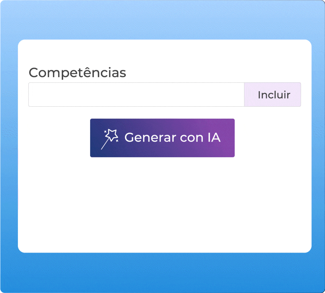 - Clique em “Gerar com IA” para criar 5 habilidades automaticamente.